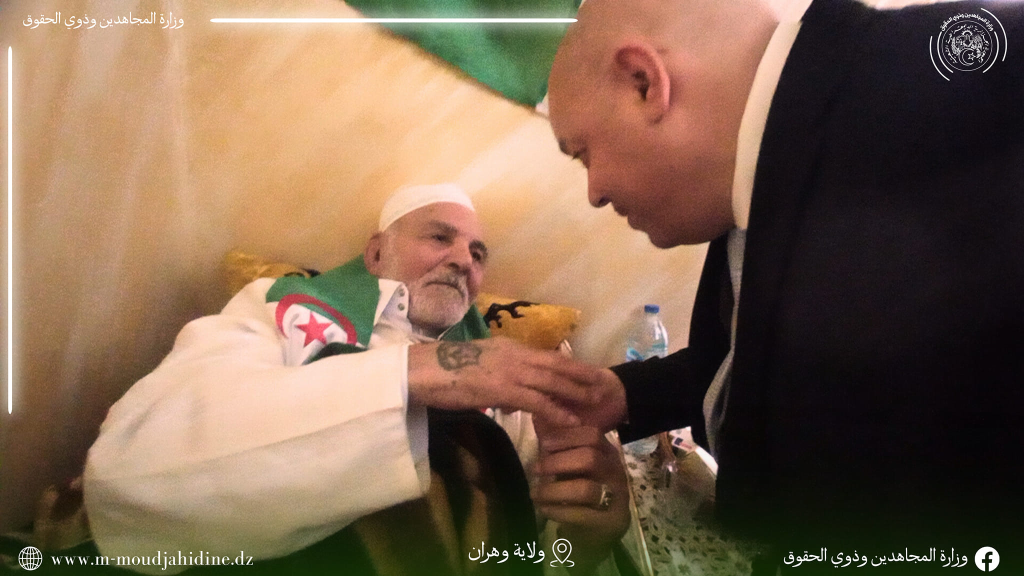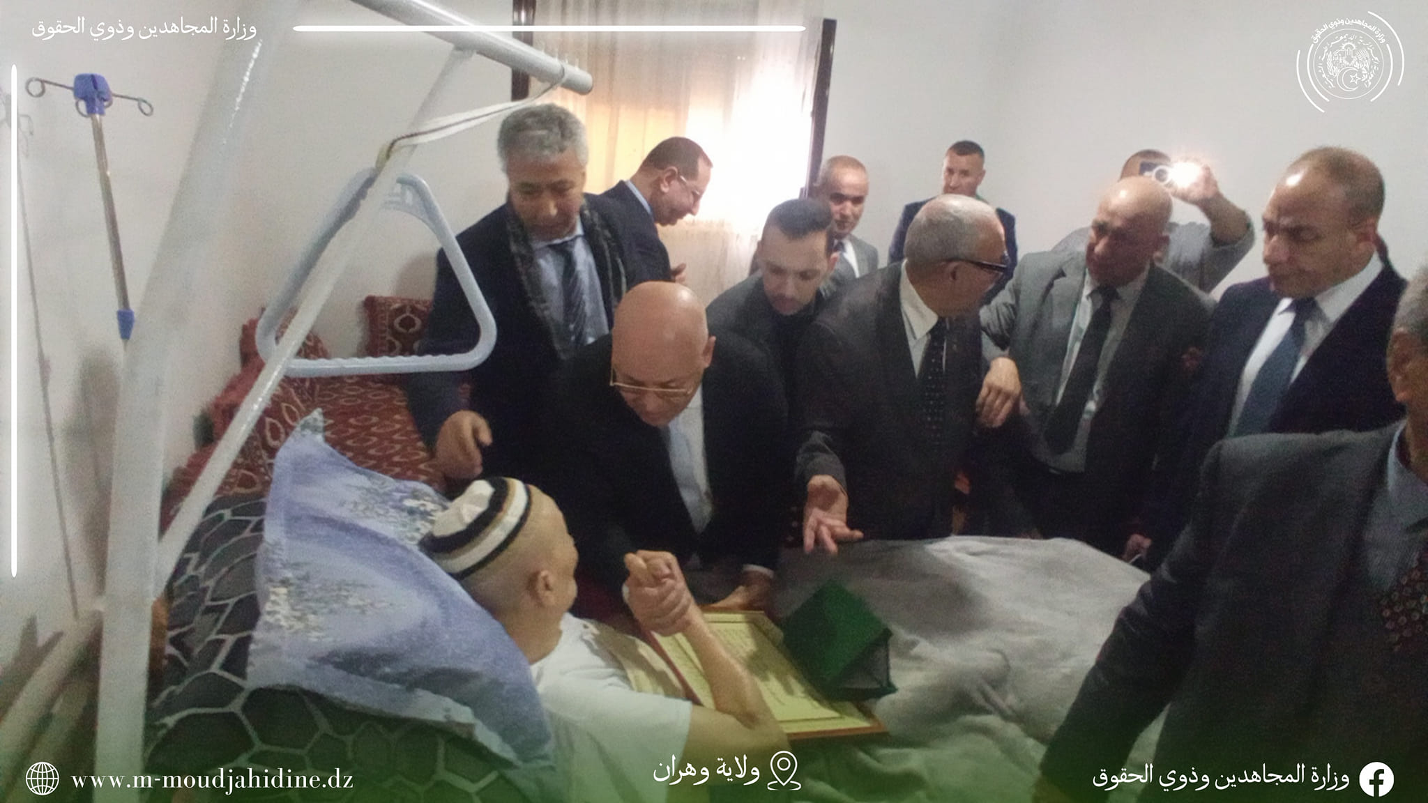 وزير المجاهدين وذوي الحقوق السيد العيد ربيقة ، يقوم بزيارة منزلية تفقدية للمجاهد “حي مامون”، عضو جيش التحرير الوطني 1958-1962 ومن كبار المعطوبين.