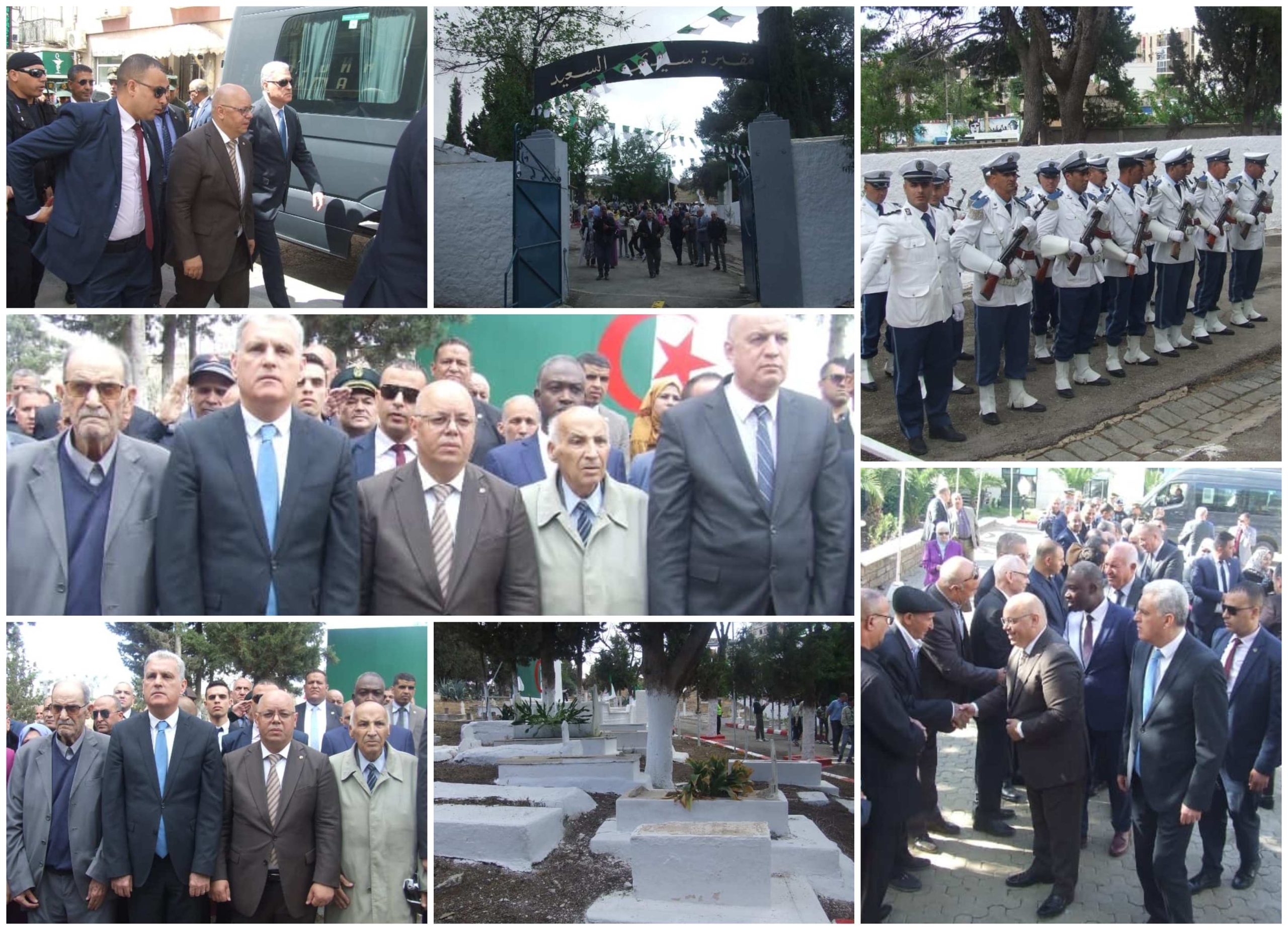 بمقبرة الشهداء “سيدي سعيد “وزير المجاهدين وذوي الحقوق السيد العيد ربيڨة في وقفة ترحم على أرواح الشهداء، رفقة السلطات المحلية والعسكرية للولاية