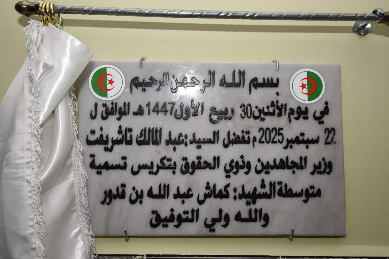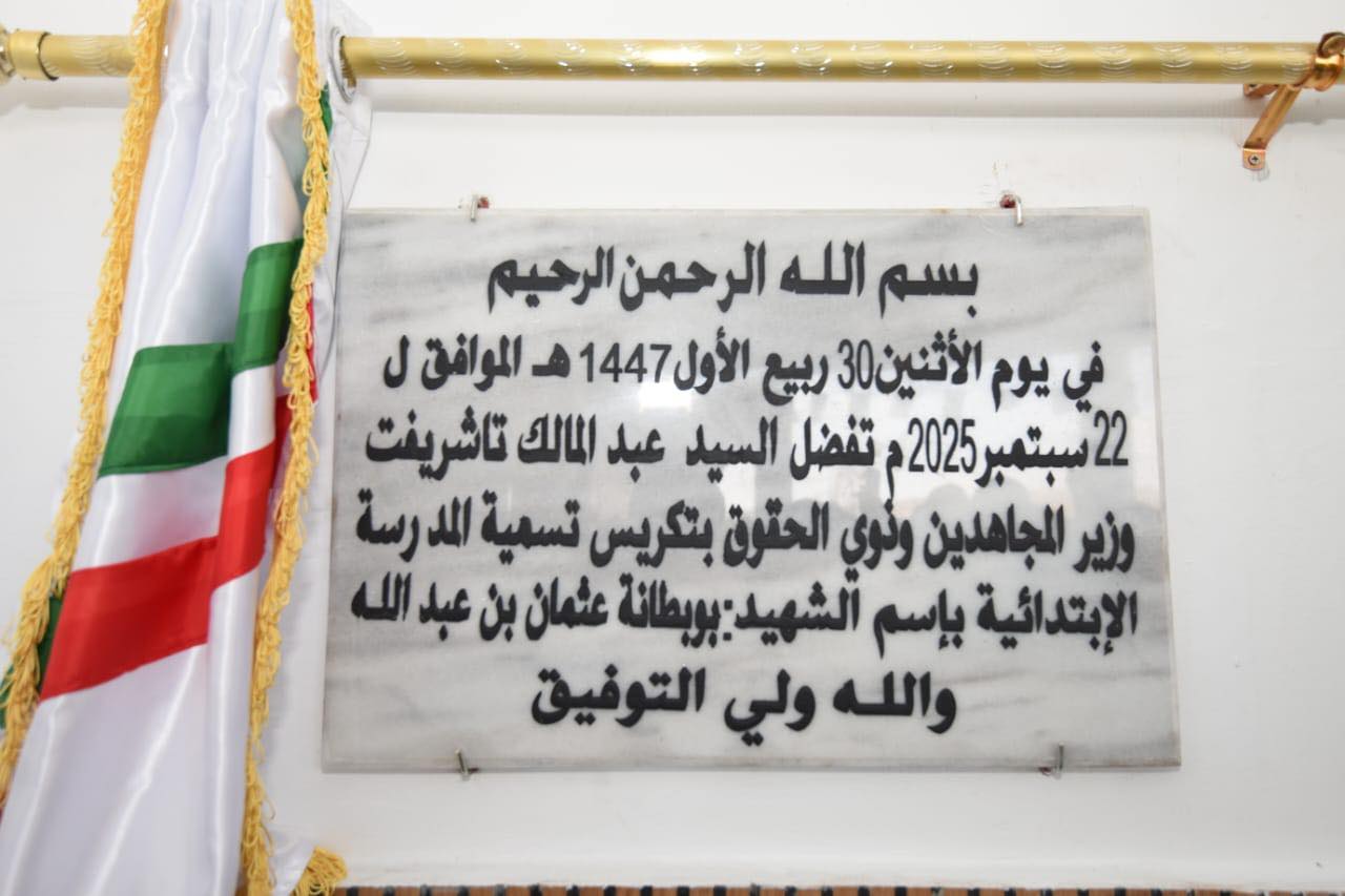 وأكد السيد الوزير بهذه المناسبة أن تسمية المؤسسات التربوية بأسماء الشهداء والمجاهدين تُعد خطوة رمزية هامة تهدف إلى غرس قيم التضحية والوفاء في نفوس التلاميذ، وتعزيز ارتباط الأجيال الصاعدة بأمجاد وطنهم، بما يضمن صون الذاكرة الوطنية ونقلها بكل فخر للأجيال القادمة.