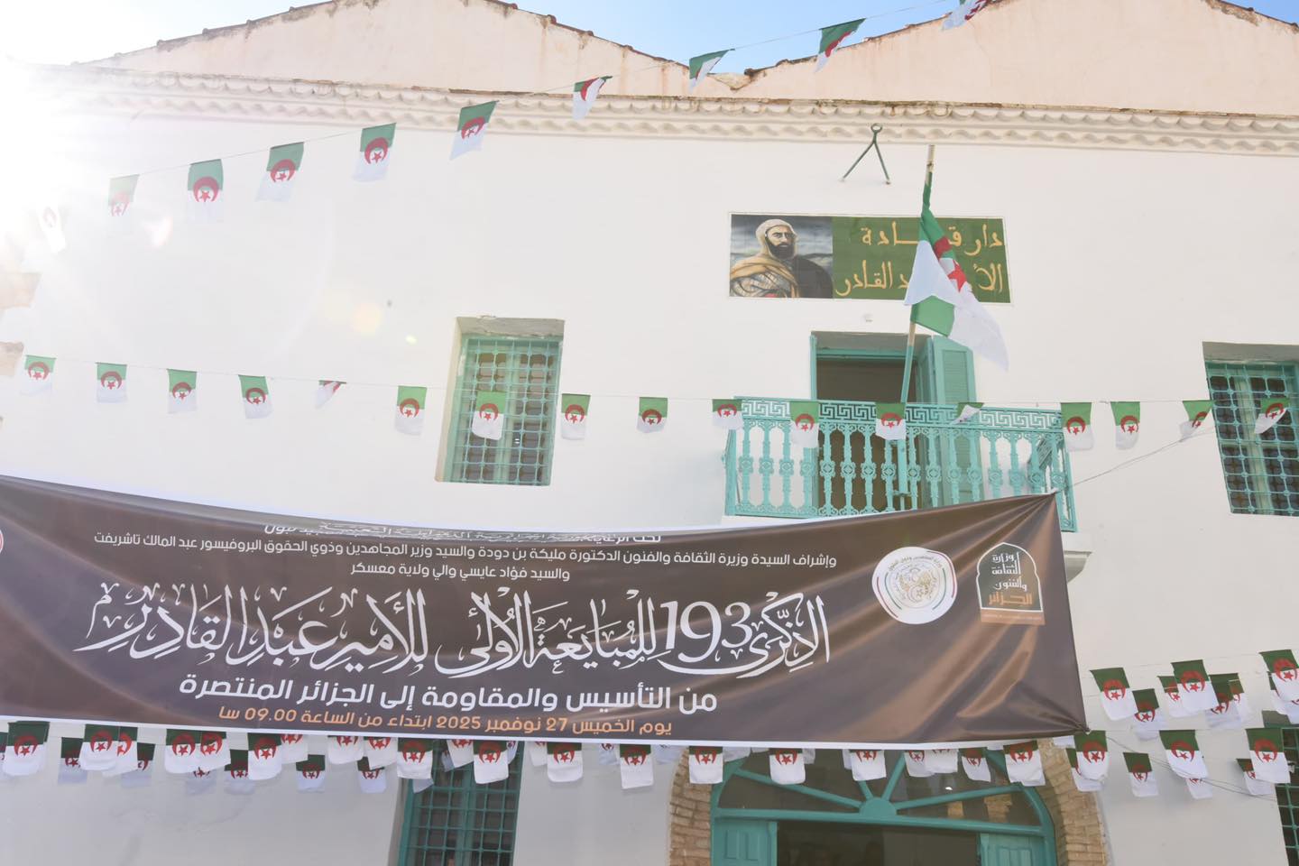 🔴 تحت الرعاية السامية لرئيس الجمهورية، السيد عبد المجيد تبون، وفي إطار إحياء الذكرى الـ193 للمبايعة الأولى للأمير عبد القادر، أشرف وزير المجاهدين وذوي الحقوق، السيد عبد المالك تاشريفت، رفقة وزيرة الثقافة والفنون، السيدة مليكة بن دودة، ووالي ولاية معسكر، السيد فؤاد عايسي، أمس الخميس 27 نوفمبر 2025، على مراسم إحياء هذه المناسبة التاريخية بولاية معسكر.