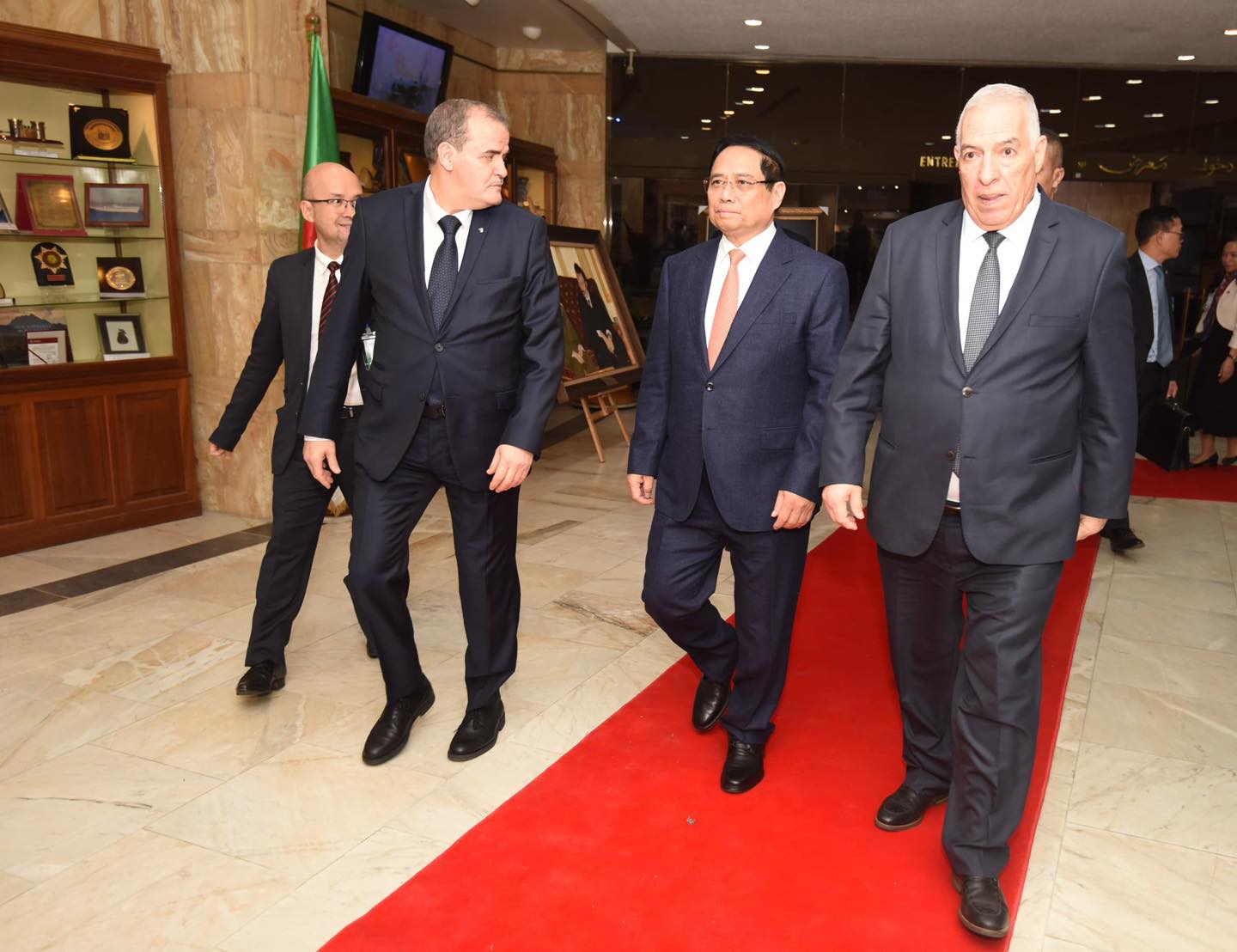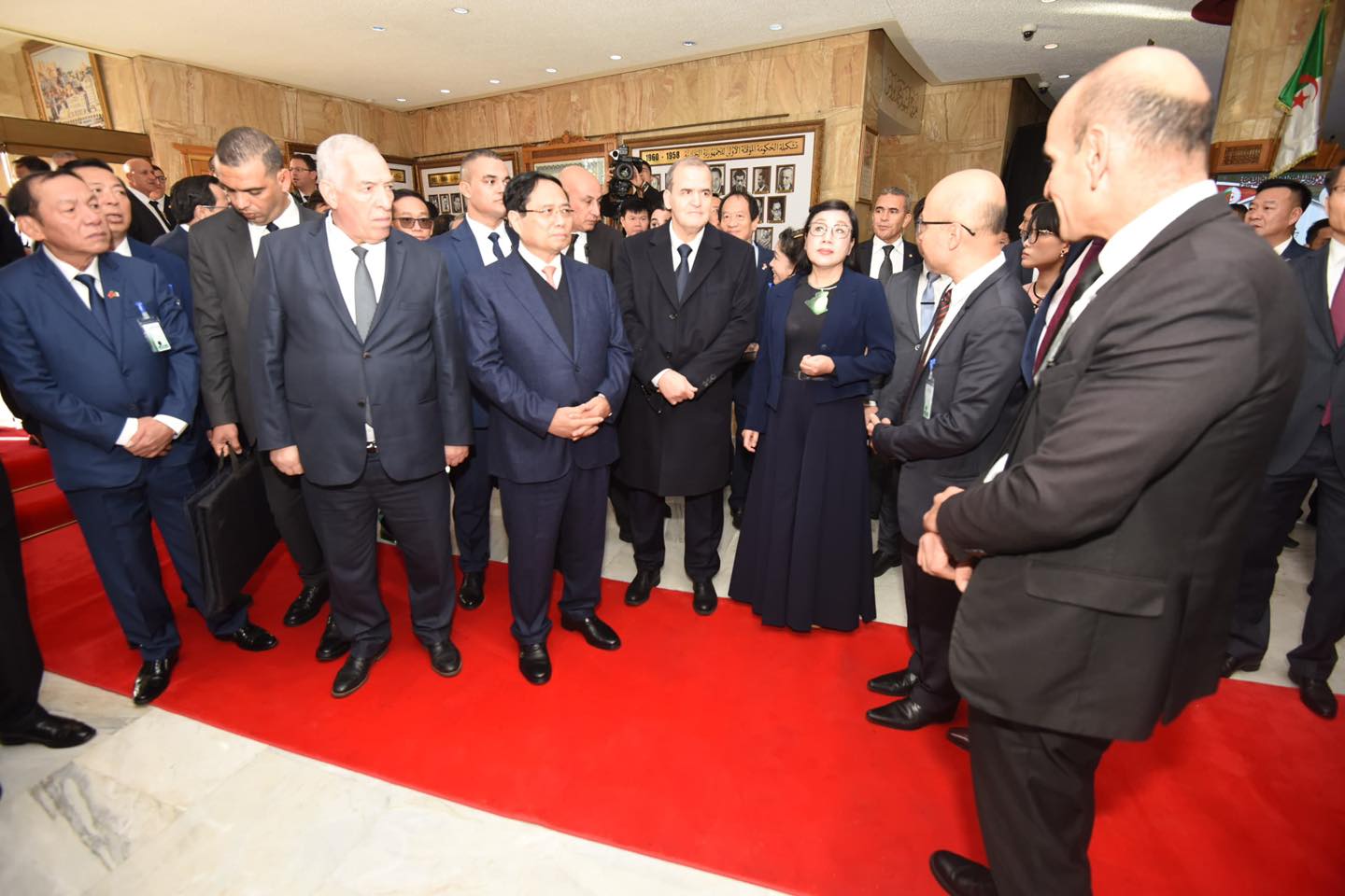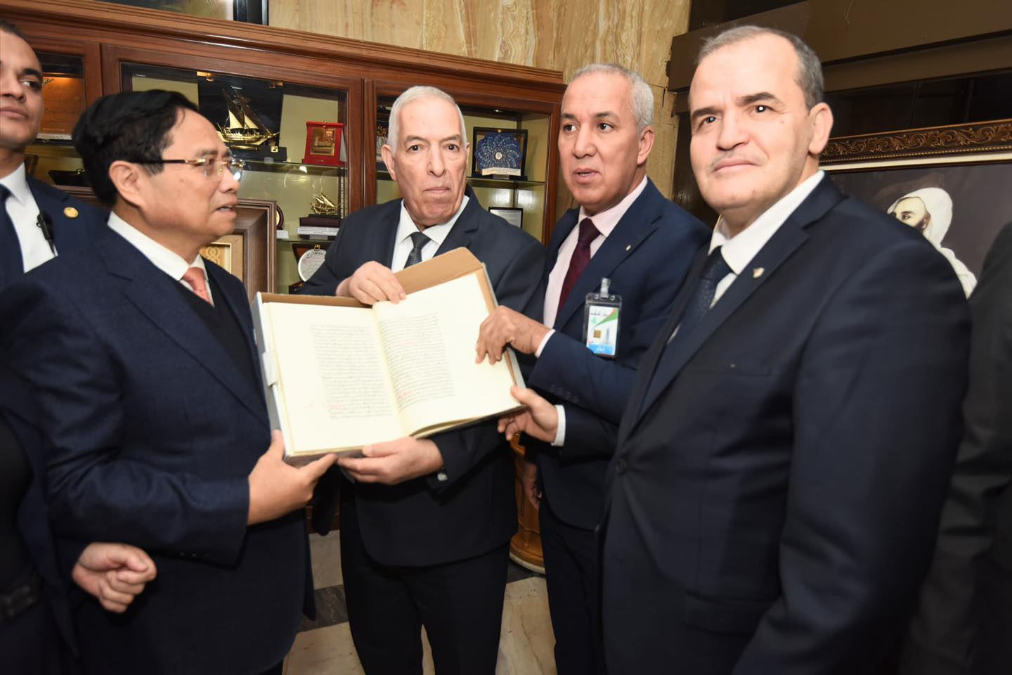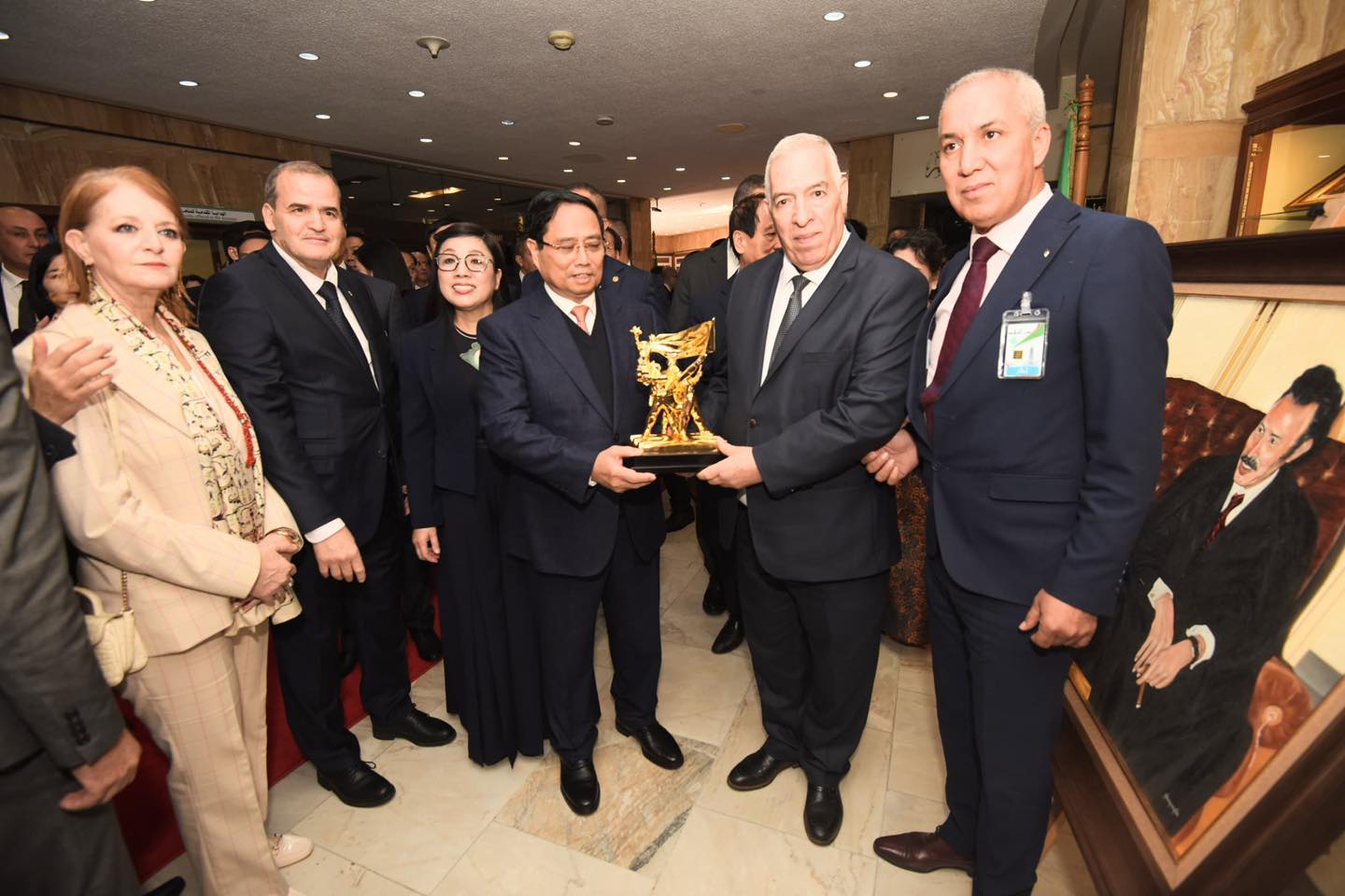 كما قدّم رئيس وزراء فيتنام لوحة فنية تذكارية تجمع بين الرئيس الراحل هواري بومدين والجنرال فو نجوين جياب، في مبادرة تحمل رمزية قوية للعلاقات التاريخية بين البلدين.