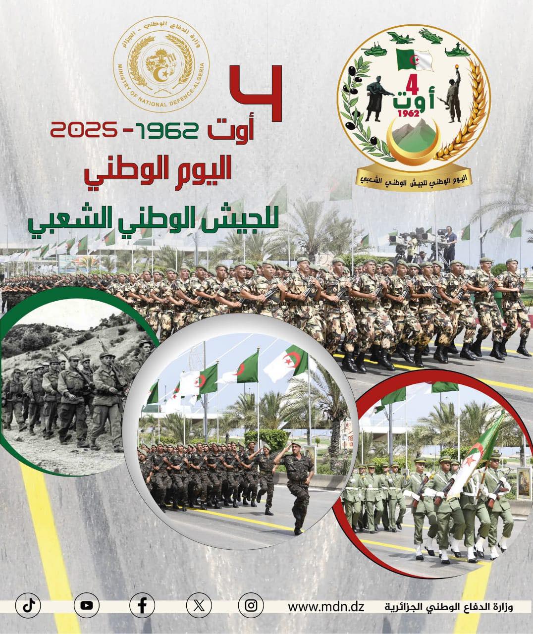 بمناسبة اليوم الوطني للجيش الوطني الشعبي الذي أقرّه رئيس الجمهورية القائد الأعلى للقوات المسلحة وزير الدفاع الوطني، السيد عبد المجيد تبون، يوما وطنيًا، عرفاناً من الأمة للمكانة السامية التي يتبوؤها سليل جيش التحرير الوطني، وإسهاماته الجليلة في بناء الدولة المستقلة وتشييد صرحها الشامخ والحفاظ على سيادتها الوطنية.