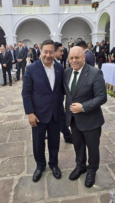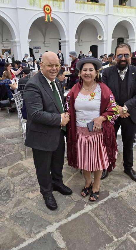 وعلى هامش مراسم الاحتفال، قدّم الوزير باسم الجزائر تهانيه لكل من نائب الرئيس البوليفي السيد “دافيد شوكيوانكا”، ووزيرة الخارجية البوليفية السيدة “سيليندا سوسا”، مؤكداً عمق العلاقات الثنائية بين البلدين.