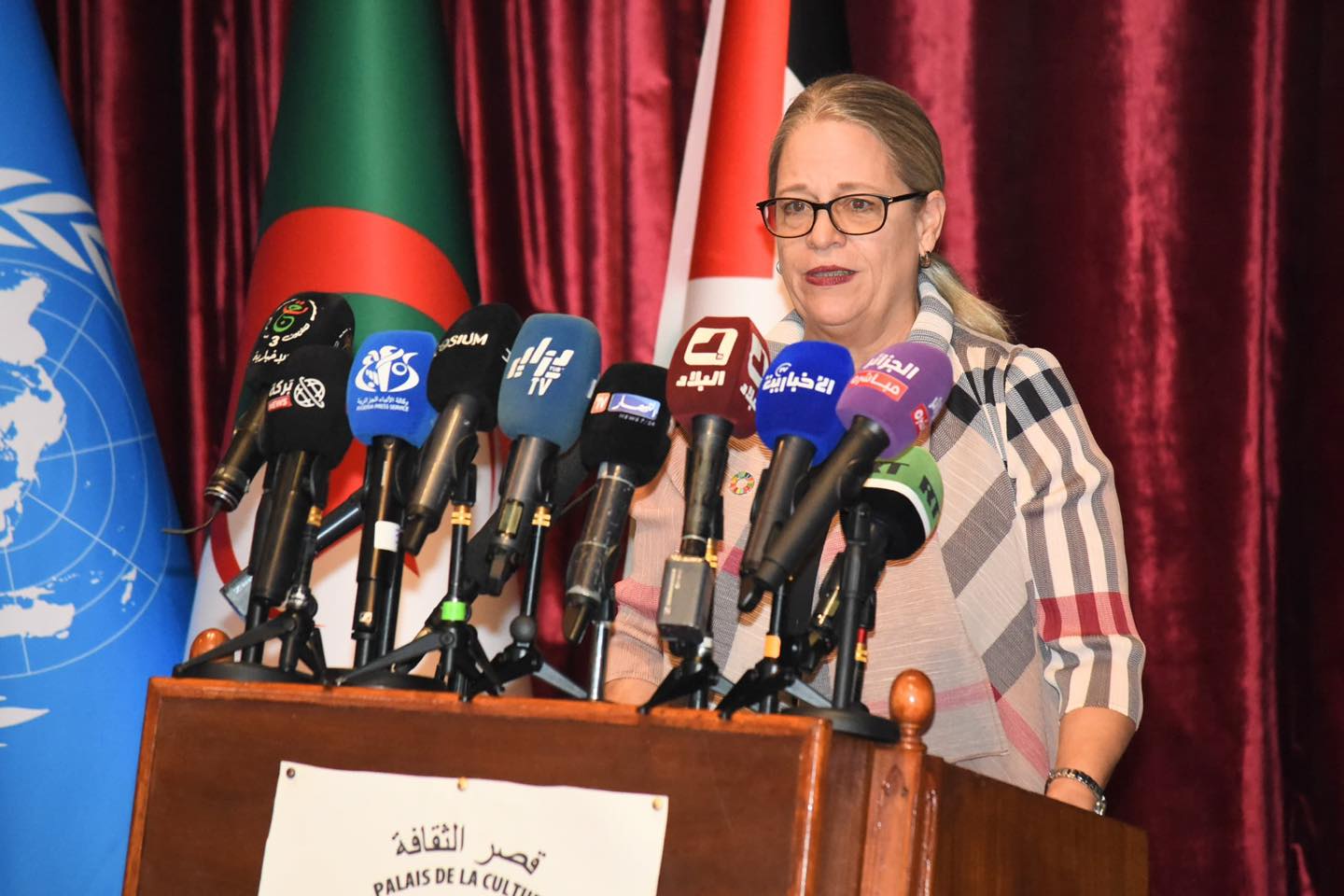 السيدة سافينا أمّاسّاري، المنسقة المقيمة لمنظمة الأمم المتحدة بالجزائر، التي تلت رسالة الأمين العام للأمم المتحدة السيد أنطونيو غوتيريش،